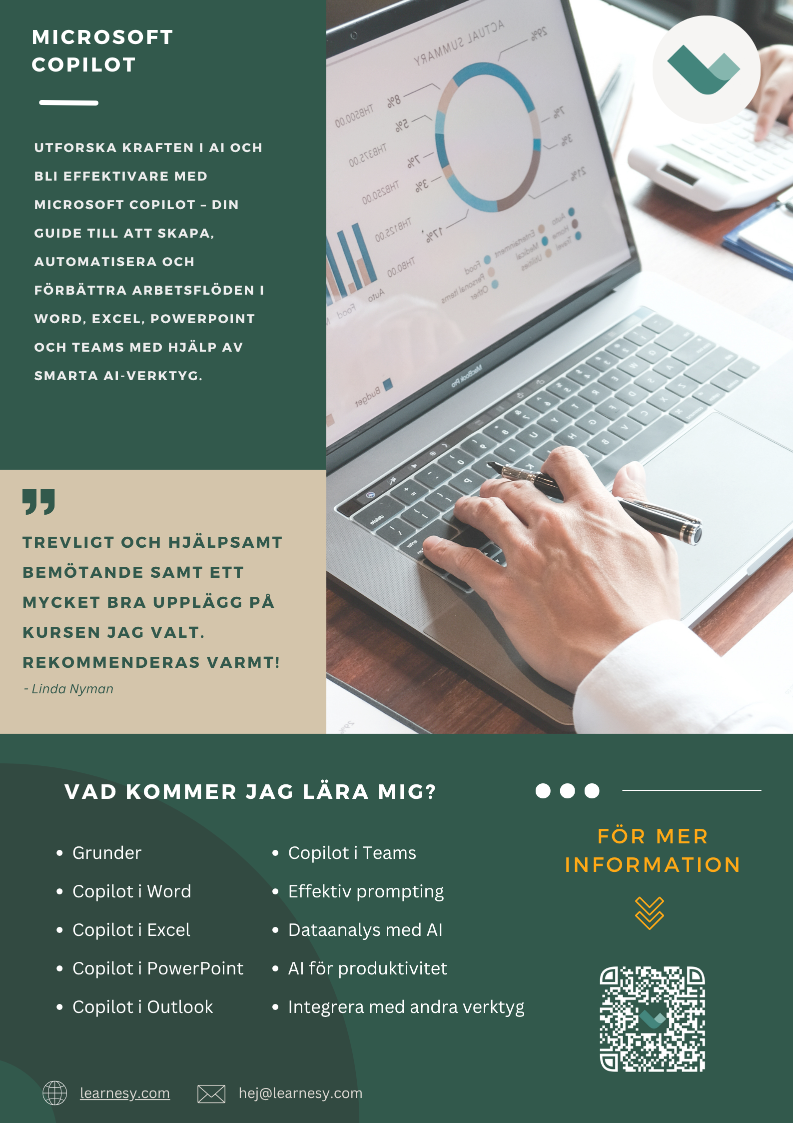 Mitt namn är Niklas och jag har arbetat som utbildare på Learnesy i flera år, med fokus på Microsofts verktyg. I den här kursen kommer vi att guida dig genom Microsoft Copilot, en kraftfull AI-assistent som kan förvandla ditt arbetssätt.