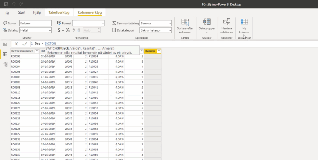 Skapa en förståelse för hur relationella tabeller fungerar genom att utvidga dina tabeller med beräknade kolumner. Med beräknade kolumner kan man lägga till ny data direkt i modellen. För detta ändamål används DAX-formler.