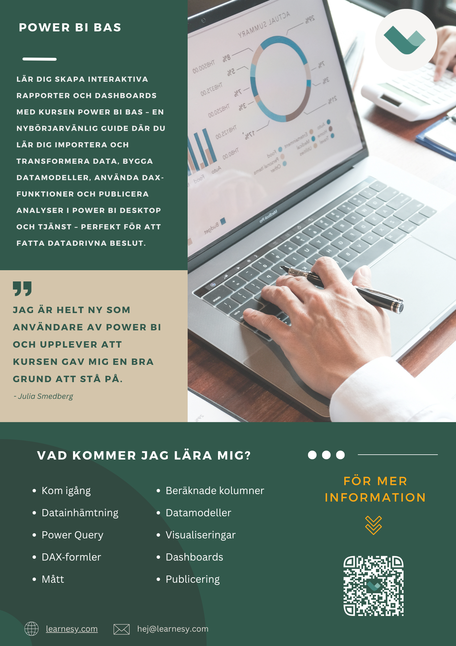 Vill du på ett enkelt sätt ge dina anställda nya möjligheter att analysera data och skapa visuella rapporter i Power BI? Hör gärna av dig till foretag@learnesy.com – vi hjälper dig att komma igång.