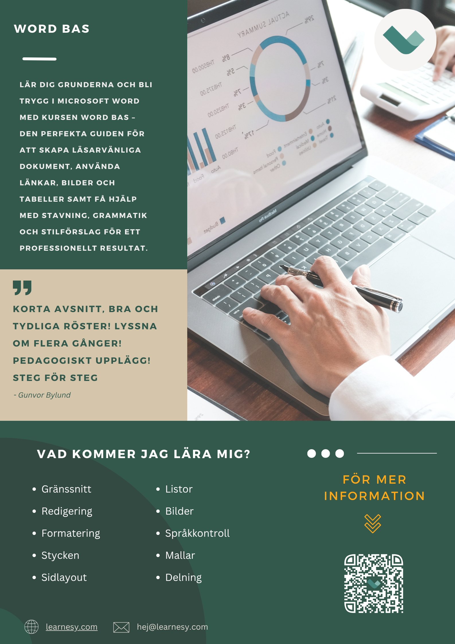 Word Bas passar nybörjare och självlärda som vill lära sig hantera Word effektivt för jobb, studier eller privat bruk.
