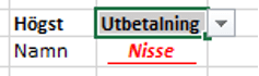 Vad händer då i denna formel? Jo, vi låter formeln ta reda på vilket värde som är störst i kolumnen för utbetalning och sen leta upp vem som får den specifika utbetalning. Som ni ser så har jag markerat alla kolumner som ett område att leta i och finessen med min formel är att jag via en filterlista kan definiera om det är utbetalning eller lön etc som vi vill kontrollera.