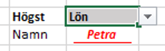 Här finner funktionen namnen på de personer som finns med i urvalet samt vem som har det högsta värdet.