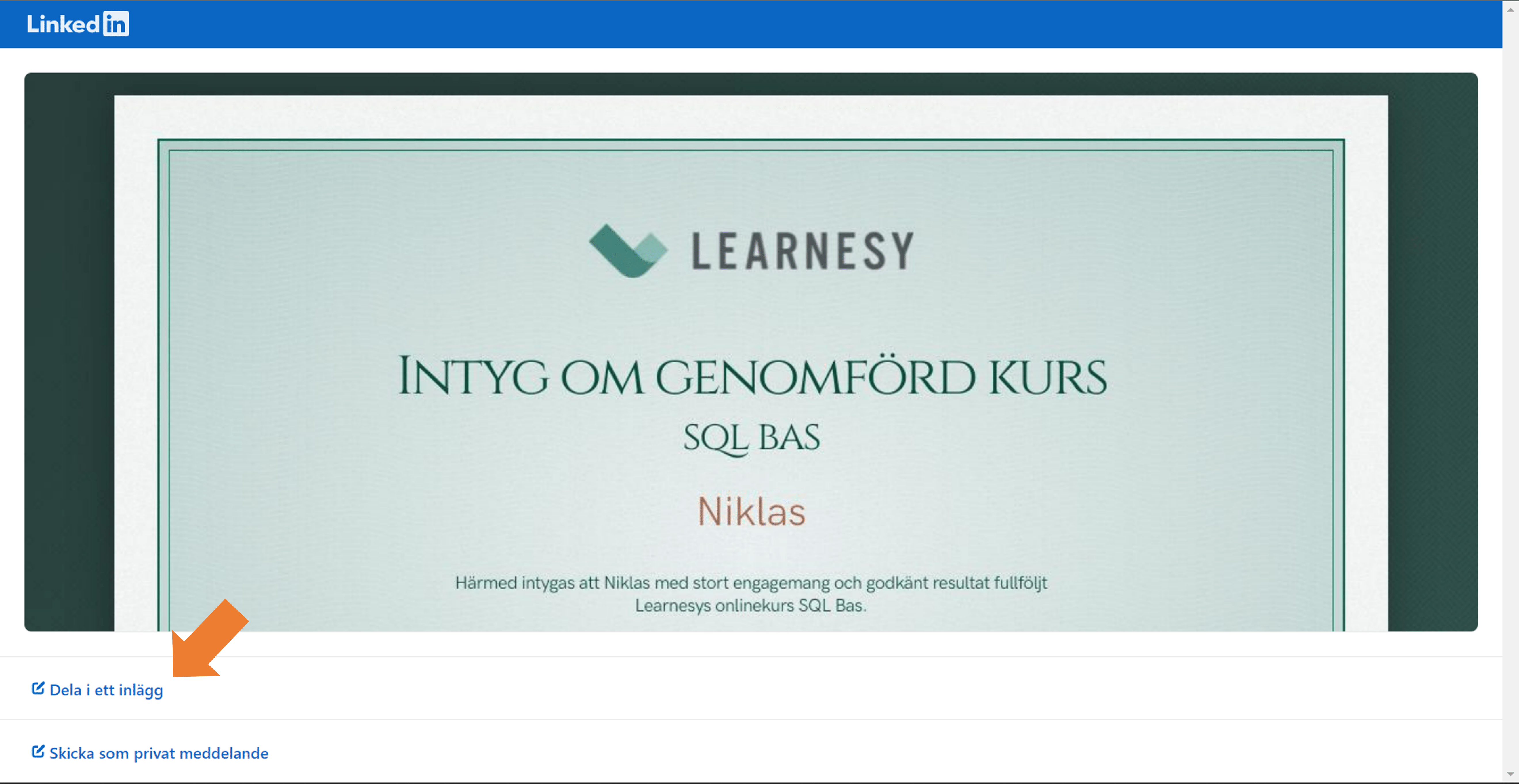 Alternativ 1: Såhär gör du för att dela ditt diplom på LinkedIn